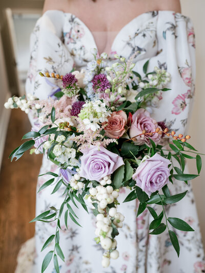 The historic Hilton Netherland Plaza paired perfectly with A+R's classic white Spring wedding. The combination of high and low centerpieces along with soft lighting highlighted the classic venue beautifully. The bridal bouquet showcased the loveliest Spring blooms in an organic design with bridesmaid bouquets to coordinate.