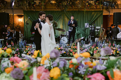 Guests had two unique experiences for this once-in-a-lifetime wedding. They begin their evening strolling down a wooden boardwalk surrounded with melodic nature sounds and a vibrant garden of flowers every inch of the way. Guests took a quick walk down the street to the Lytle Park Hotel where they were immersed in a lush rooftop reception, while overlooking the sites of downtown Cincinnati.