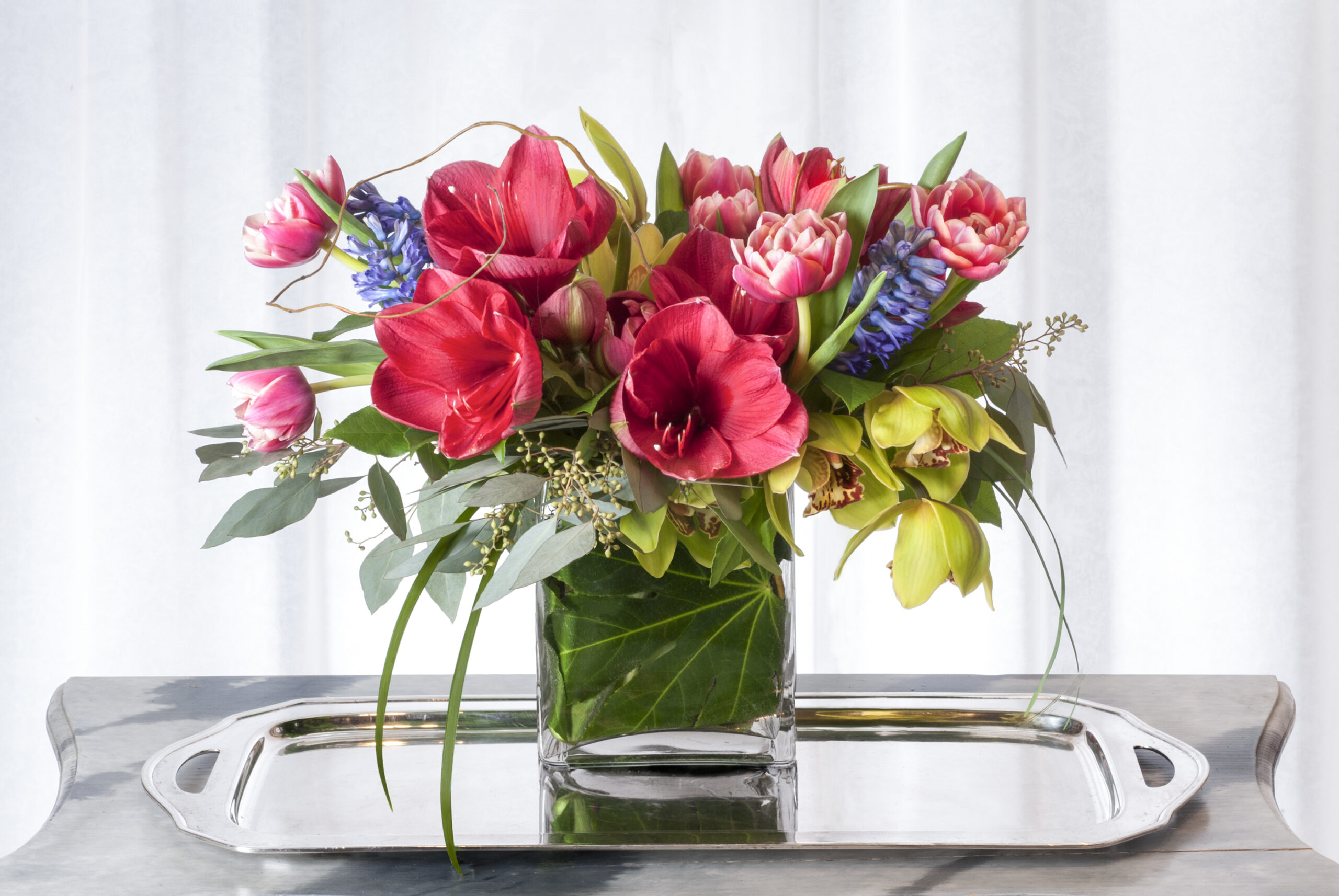 The photos you see on our website are examples of our work. We create unique custom fresh flower arrangements every day using the freshest, most beautiful flowers of the day. We source our flowers from local flower farms, local suppliers, and around the world. Availability of specific flowers varies by season. While we cannot guarantee an exact match to our website, we can promise beautiful flowers delivered to you in the local Cincinnati-Northern Kentucky area.