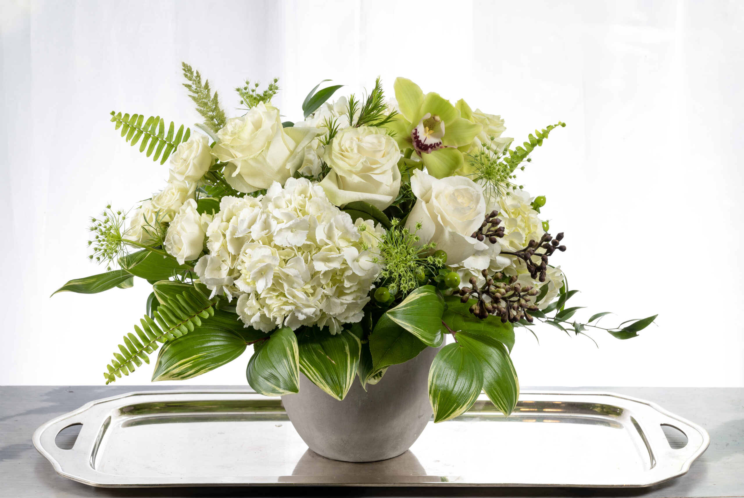 The photos you see on our website are examples of our work. We create unique custom fresh flower arrangements every day using the freshest, most beautiful flowers of the day. We source our flowers from local flower farms, local suppliers, and around the world. Availability of specific flowers varies by season. While we cannot guarantee an exact match to our website, we can promise beautiful flowers delivered to you in the local Cincinnati-Northern Kentucky area.
